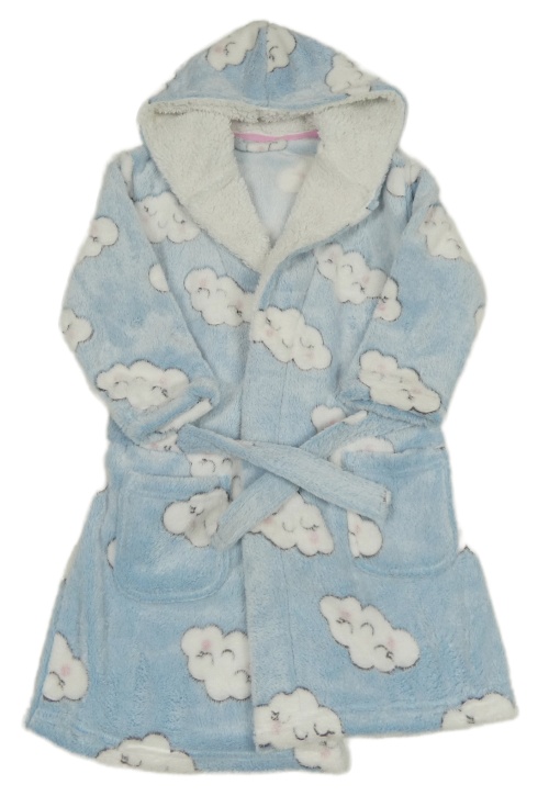 Svetloružový chlpatý župan s mraky a kapucňou George