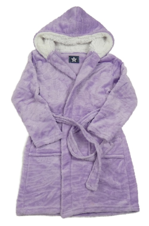Fialový vzorovaný plyšový župan s kapucňou