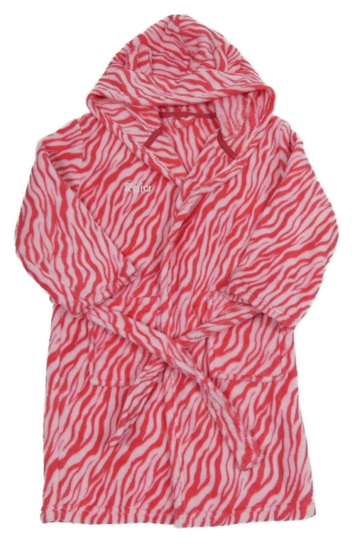 Ružovo-tmavoružový vzorovaný chlpatý župan s kapucňou