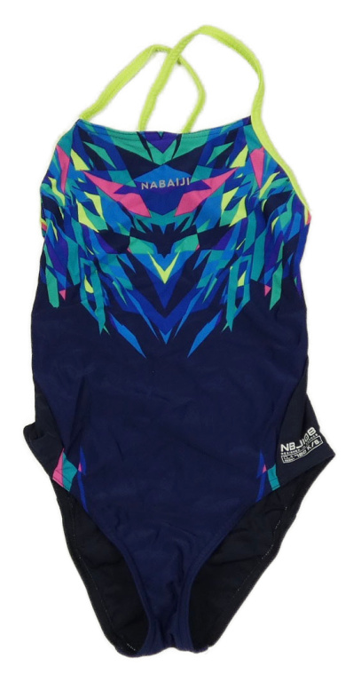 Tmavomodro-farebné vzorované jednodielne plavky Nabaiji