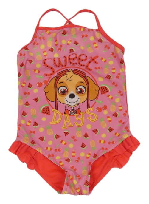 Ružové jednodielne plavky s ovocem - Tlapková Patrola