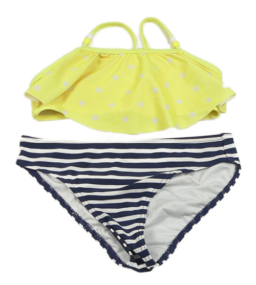 Žlto-tmavomodro-biele pruhované dvoudílné plavky s bodkami Tchibo