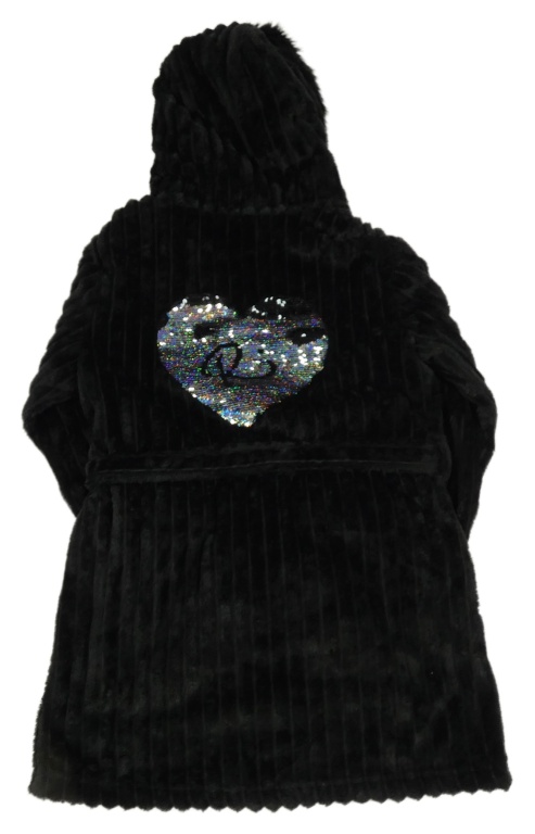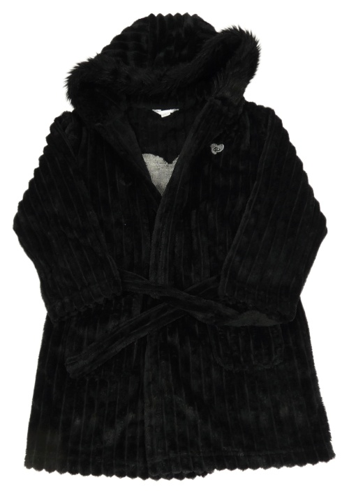 Čierny rebrovaný plyšový župan so srdiečkom a překlápěcími flitre a kapucňou s kožešinou RIVER ISLAND