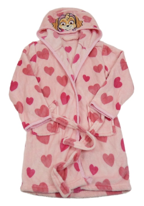 Svetloružový srdiečkovaný chlpatý župan s kapucí - Paw Patrol