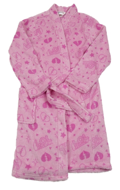 Ružový chlpatý župan so srdiečkami a nápismi