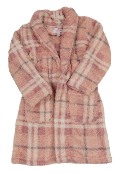 Ružovo-bielo-sivý kockovaný plyšový župan