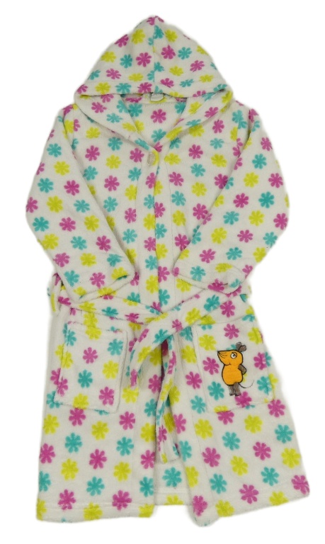 Biely vzorovaný chlpatý župan s myškou a kapucňou PlayShoes