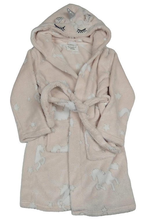 Svetloružový plyšový župan s jednorožcami a kapucňou Primark