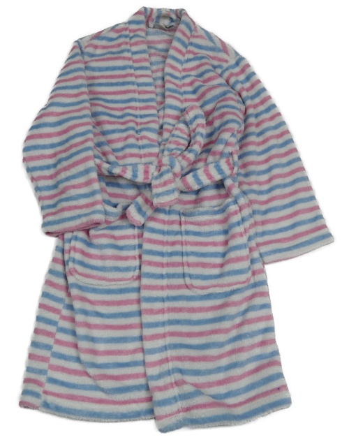 Bielo-ružovo-modrý pruhovaný chlpatý župan Alive