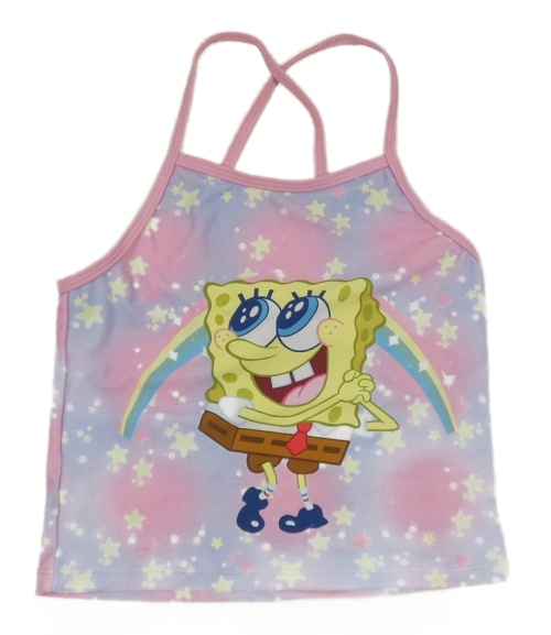 Fialovo-ružový batikovaný plavkový top so SpongeBobem