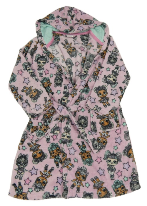 Svetloružový chlpatý župan s potiskem LOL Suprise George