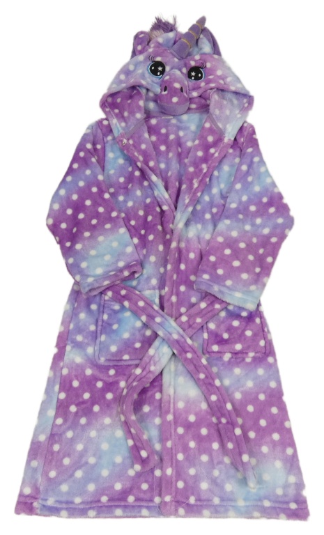 Fialovo-modrý batikovaný bodkovaná ý chlpatý župan s kapucí - jednorožec