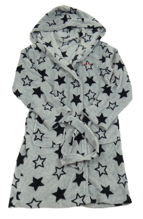 Sivo-čierny plyšový župan s hviezdičkami a kapucňou