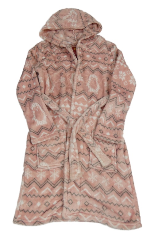 Svetloružový chlpatý župan so vzorom a kapucňou