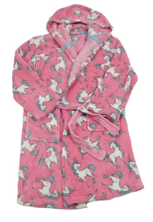 Ružový plyšový župan s jednorožcami a kapucňou