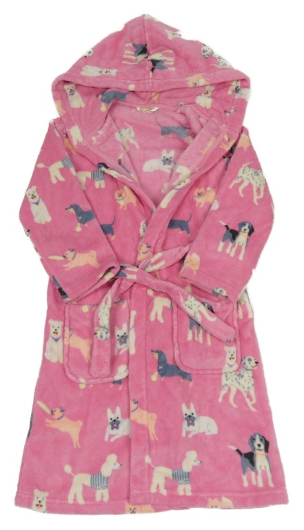 Ružový chlpatý župan s pejsky a kapucňou M&S