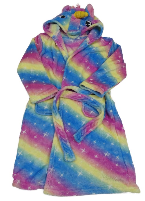 Farebný duhový plyšový župan s hviezdičkami a kapucí - jednorožec