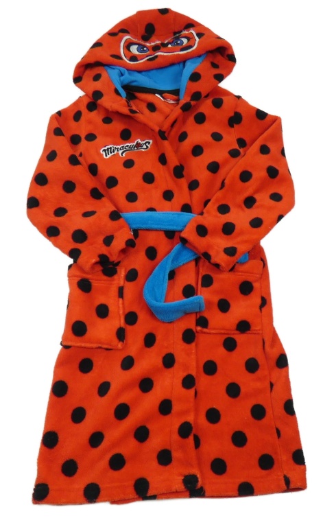 Červeno-čierny bodkovaná ý plyšový župan s kapucí - Miraculous