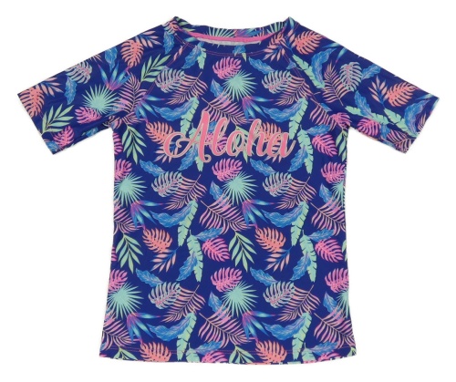 Tmavomodro-ružovo-tyrkysové UV tričko s listami a nápisom St. Bernard