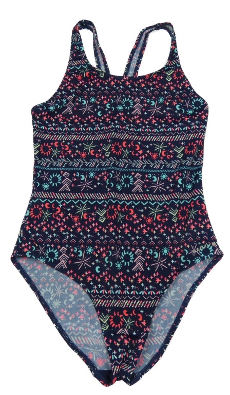 Tmavomodré vzorované jednodielne plavky s mesiacmi a sluníčky a hviezdičkami