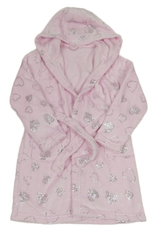 Svetloružový chlpatý župan so srdiečkami a kapucňou Matalan