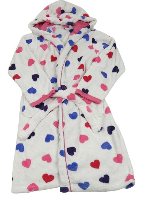 Biely chlpatý župan so srdiečkami a kapucňou F&F