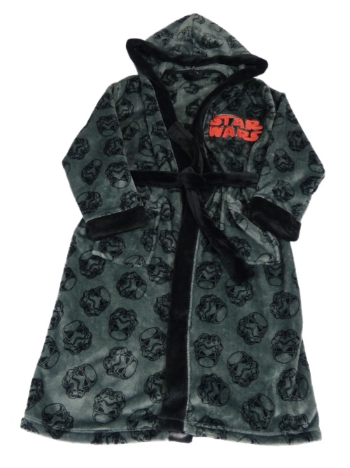 Sivo-čierny chlpatý župan so Star Wars a kapucňou