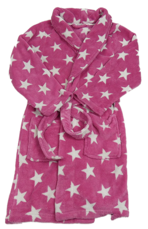Tmavoružový plyšový župan s bielými hviezdičkami a kapucňou TU