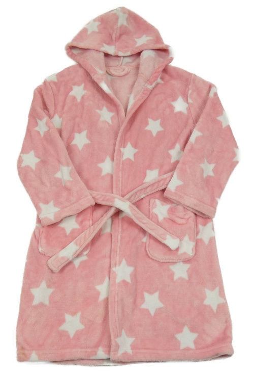 Ružový plyšový župan s bielými hviezdičkami a kapucňou George