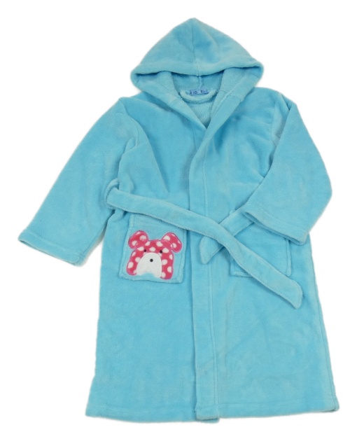 Svetlomodrý chlpatý župan s medvedíkom a kapucňou