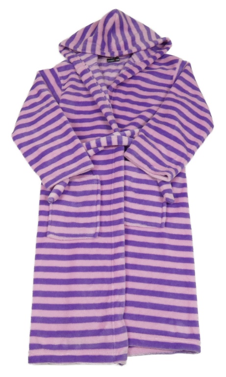 Tmavofialovo-svetloružový pruhovaný plyšový župan s kapucňou crash one