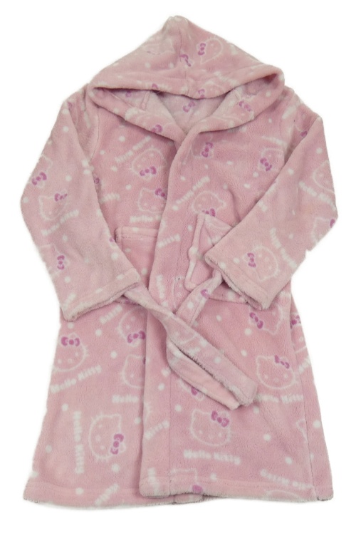 Svetloružový chlpatý župan s Hello Kitty a kapucňou