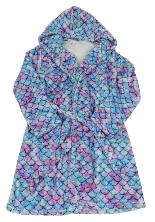 Modro-fialový vzorovaný chlpatý župan s kapucí - mořská panna