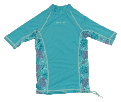 Svetlomodré UV tričko so vzorovanými prvky Tribord
