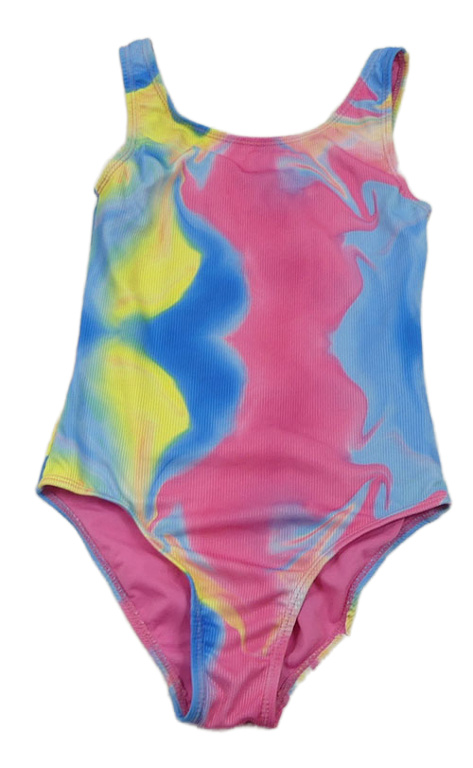 Tmavorůžovo-modro-žlté batikované rebrované jednodielne plavky St. Bernard
