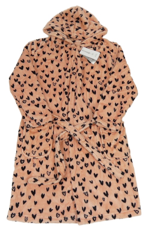Nové - Lososovo-čierny chlpatý župan so srdiečkami a kapucňou George