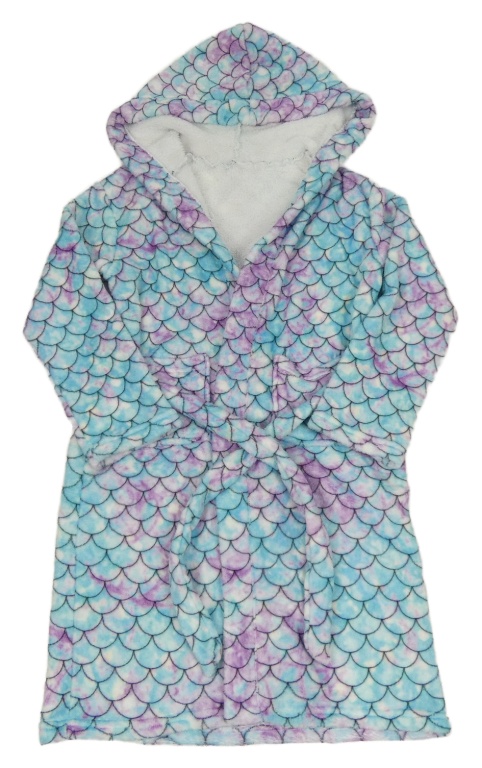 Světlemodro-fialový plyšový župan so šupinami a kapucňou