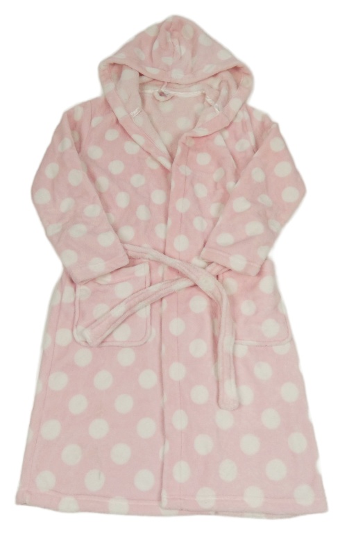 Světleůžovo-biely bodkovaná ý plyšový župan s kapucňou