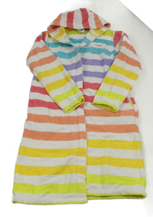 Bielo-farebný pruhovaný froté župan s kapucňou manguun