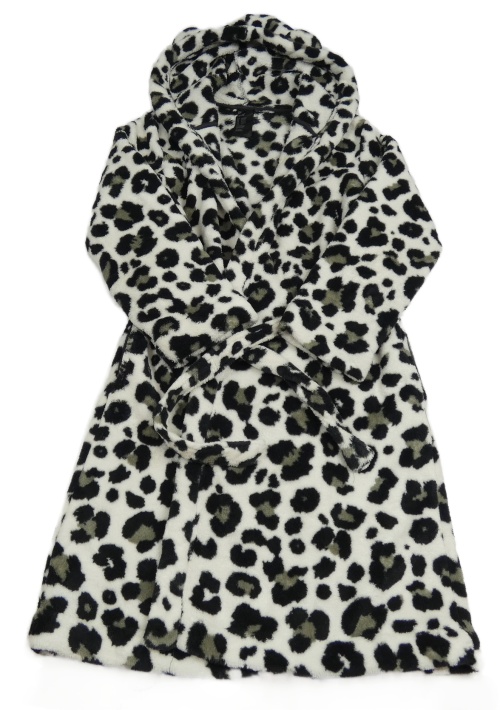 Bielo-čierno-sivý vzorovaný plyšový župan s kapucňou H&M