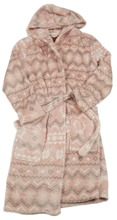 Ružovo-sivý vzorovaný plyšový župan s kapucňou
