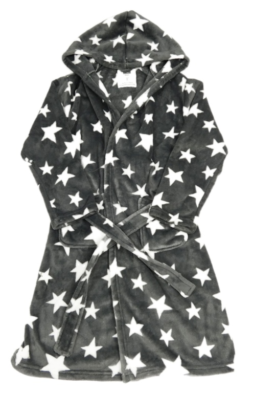Tmavosivý plyšový župan s bielými hviezdičkami a kapucňou F&F