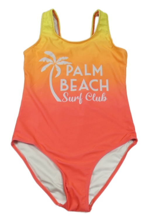 Korálovo-oranžové jednodielne plavky s nápisom