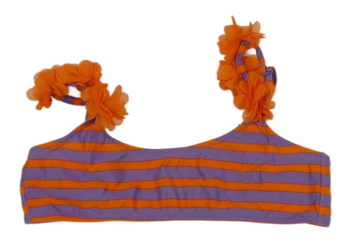 Fialovo-oranžová pruhovaná plavková podprsenka s kvetmi