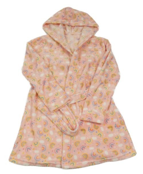 Ružový chlpatý župan s duhami a kapucňou