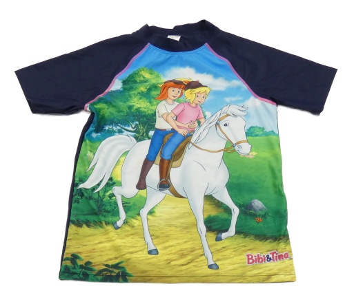 Tmavomodro-farebné UV tričko s dievčatkom a koněm