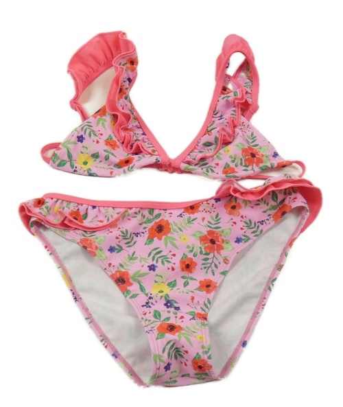 Ružové kvietkovane dvoudílné plavky s volánikmi