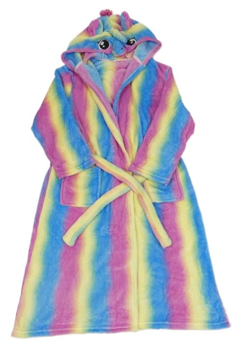 Farebný pruhovaný chlpatý župan s kapucí - jednorožec
