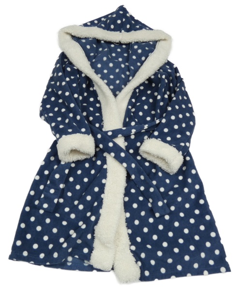 Tmavomodro-biely bodkovaný fleecový župan s kapucňou a opaskom Esprit