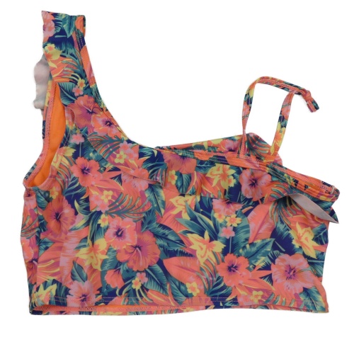 Tmavomodro-zeleno-ružová kvetovaná plavková lambáda s volánikom